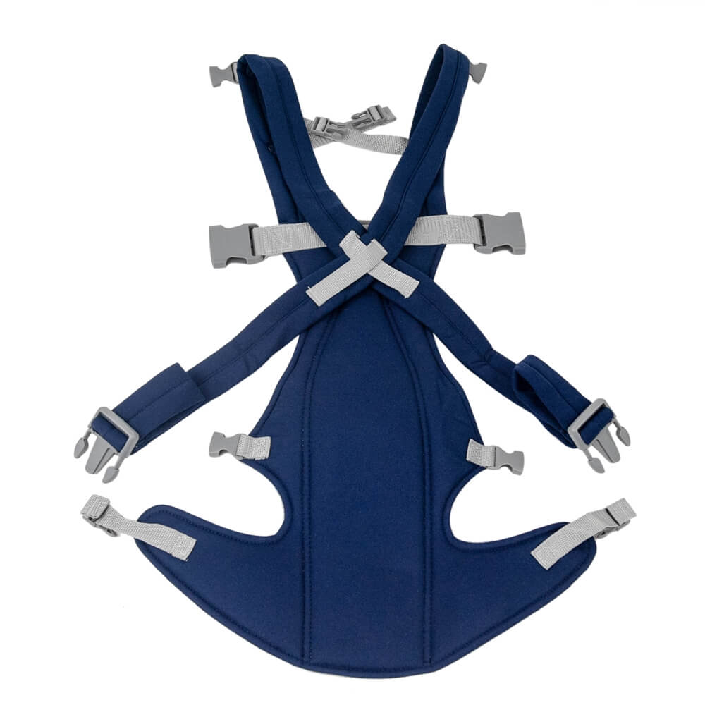 Рюкзак кенгуру из мягкого материала синего цвета со специальными вставками, пропускающими воздух. Широкие удобные лямки и пояс правильно распределяют вес ребенка по телу и не вызывают усталости и дискомфорта. Эргономичный крой рюкзака поддерживает ребенка в правильном положении. Регулировка позволяет менять ширину сидения в зависимости от возраста ребенка. Плечевые ремни и пояс регулируются.