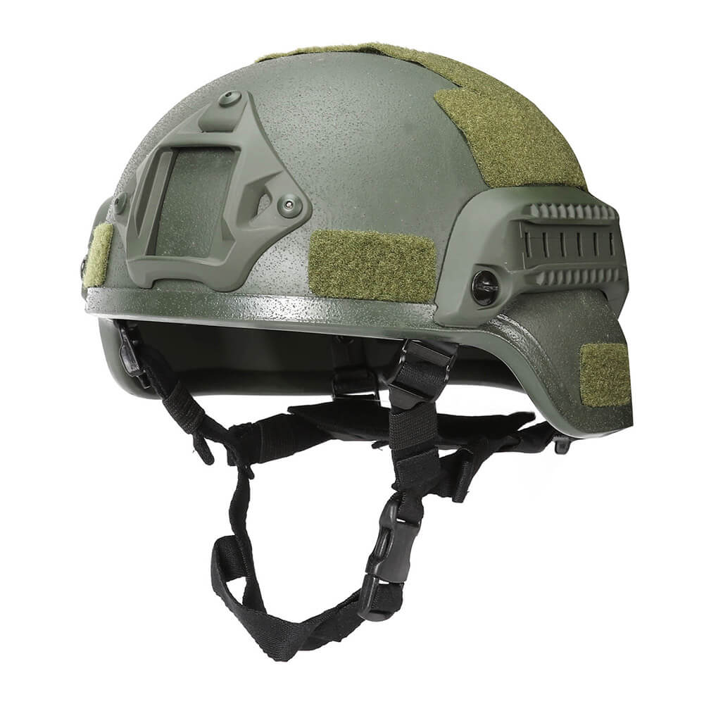 Тактический шлем ABS Mich зеленый из матового ударопрочного пластика в маскировочной расцветке подойдет для защиты головы окружностью 45-65 см во время мотоспорта, страйкбола, игр на открытом воздухе. Современный ударопрочный шлем с очками имеет внутренние мягкие подкладки, которые делают использование более комфортным и удобным. Их можно снимать для очистки. Каска для страйкбола имеет прочные ремешки с 4 точками крепления, которые можно регулировать по длине за счет качественных фиксаторов. Толщина материала делает безухий защитный тактический шлем устойчивым к пластиковым пулям, физическим ударам, падениям и другим видам механических воздействий. На боковых частях находятся направляющие, которые можно использовать для фиксации экшн-камеры или фонаря.